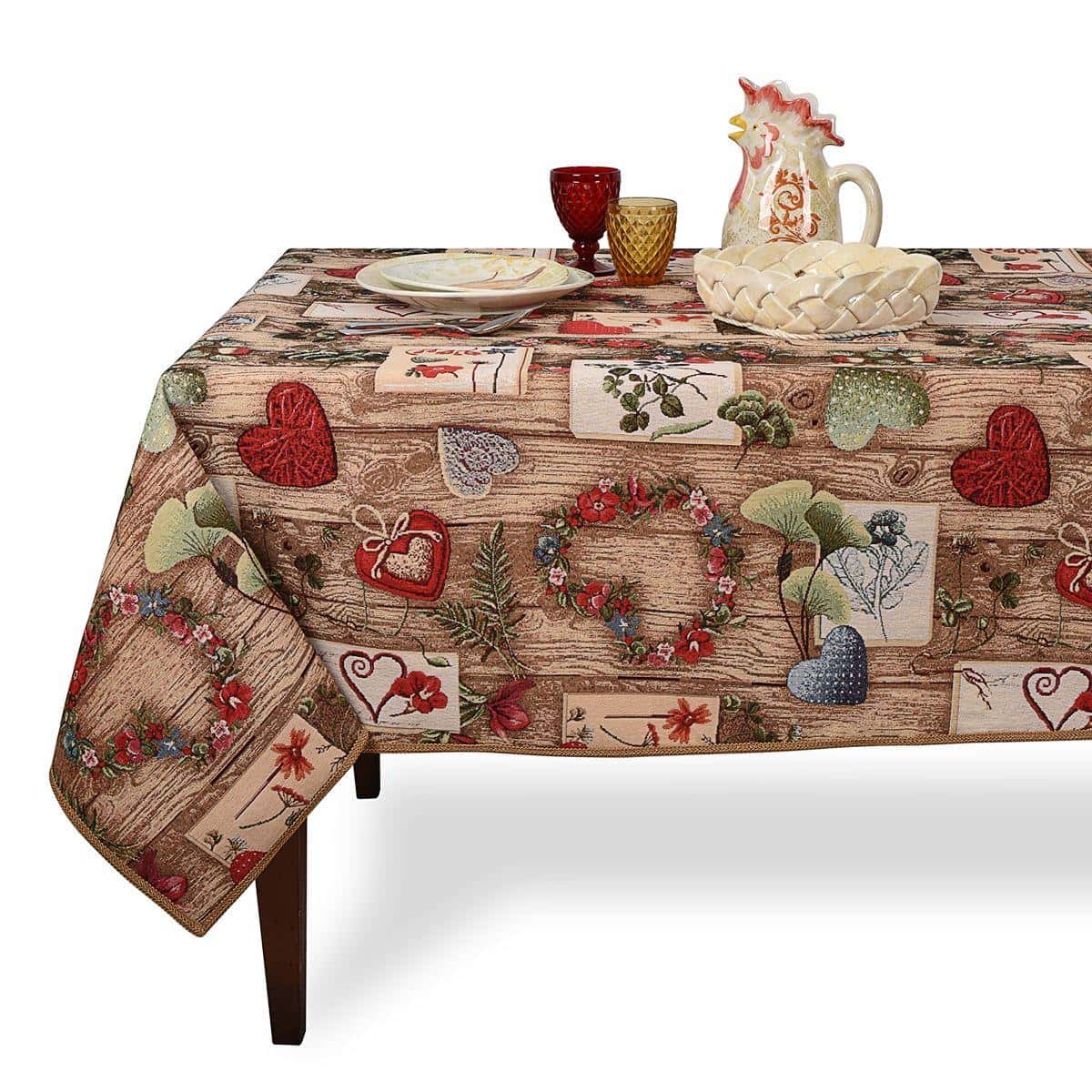 Яркая и колоритная скатерть – прекрасное дополнение интерьера, которому подлинные акценты придают самобытность и уют. Дощатый стол с теплыми сердечными сюрпризами, чай с ароматными пирожками, тиканье старинных настенных часов – ностальгическая атмосфера, которую легко воспроизвести в настоящем.