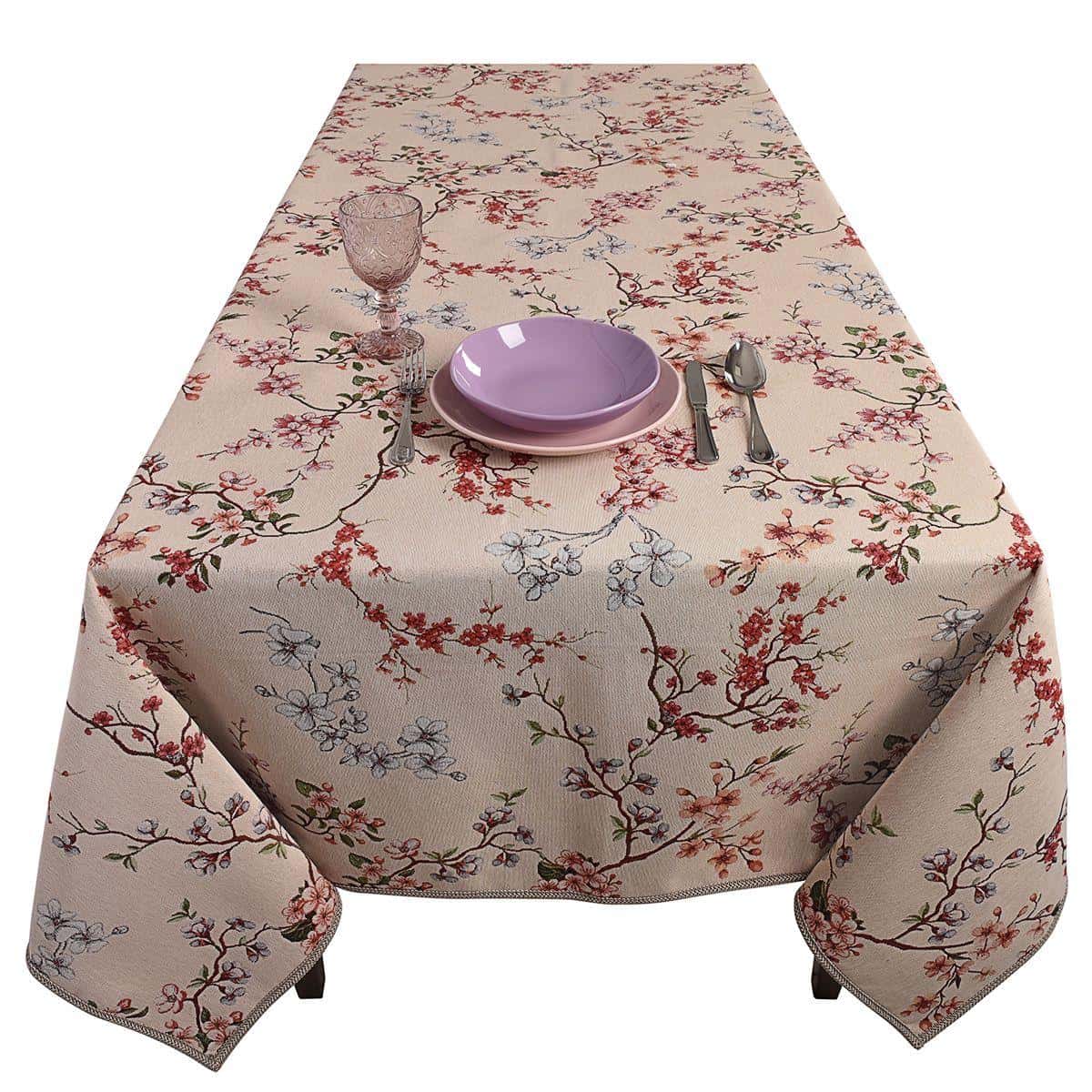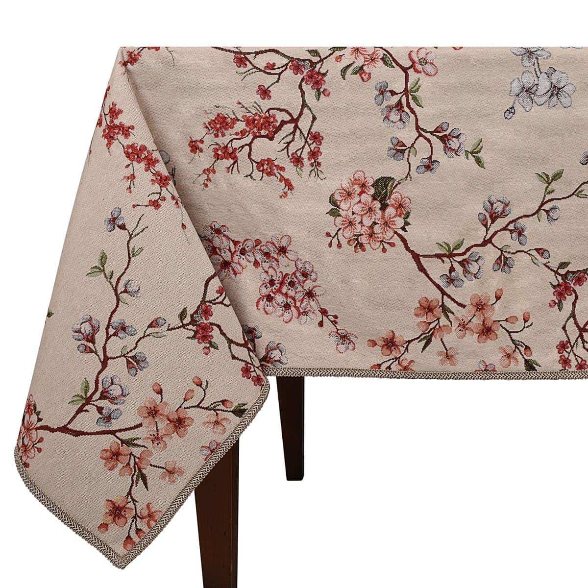 Большая скатерть гобеленовая с тефлоновой пропиткой прямоугольная Сакура 160×320 см