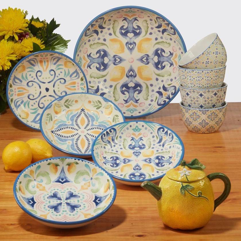 Средиземноморская эстетика и американское качество соединились в коллекции «Лимонад», созданной брендом Certified International. Яркий акварельный орнамент разработан художницей Диной Джун — мастером, чьи работы наполняют посуду особым теплом и атмосферой солнца.