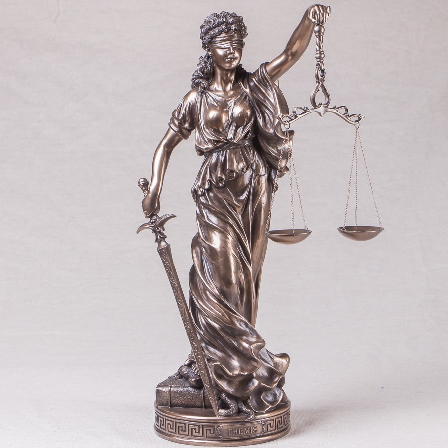 Як і будь-якого грецького божества, в римському пантеоні у богині правосуддя був власний двійник. Нею виявилася велика Юстиція – римська богиня справедливості. Сучасна фігурка, що символізує справедливий суд, – це скоріше саме Юстиція, а не Феміда. Ця думка підтверджується додатковим атрибутом - пов'язкою на очі, що символізує рівність і неупередженість. Феміда у греків вершила суд із відкритими очима. Так виник цікавий казус: у світі богиню справедливості називають Фемідою, а зображують як Юстицію.