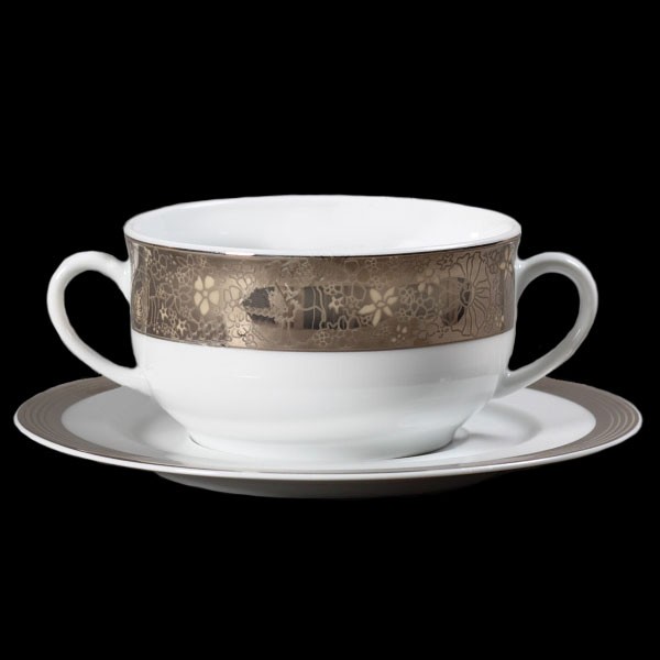 Бульонница с ручками на тарелке "Opal -Шоколад" 350 мл на 6 персон