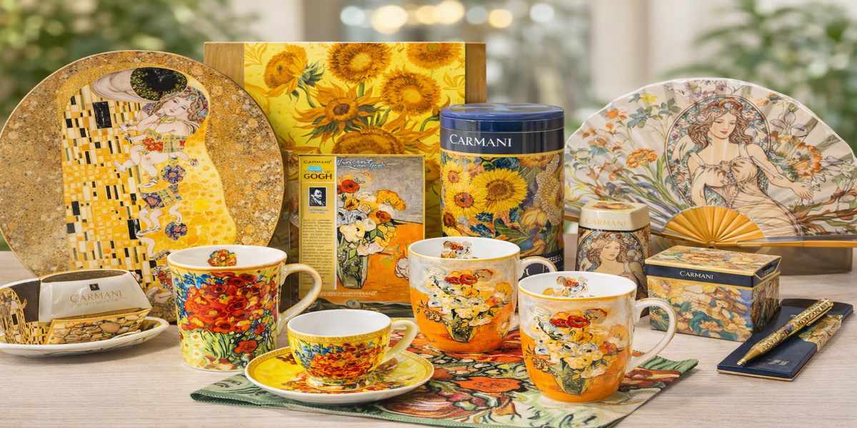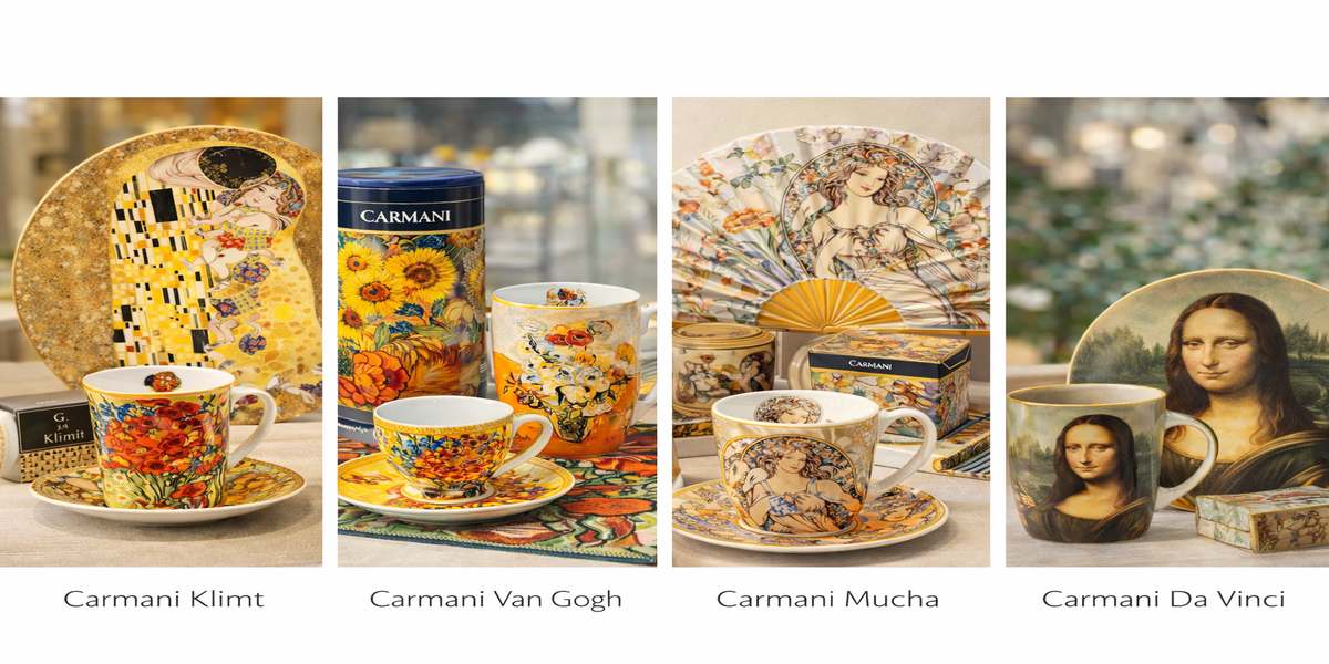 Вироби Carmani — це не абстрактний декор, а предмети, які органічно вписуються у повсякденний побут. Чашка з мотивами Клімта використовується для ранкової кави, вироби з роботами Ван Гога стають акцентом святкового сервірування, а декоративні елементи доповнюють інтер’єр.
