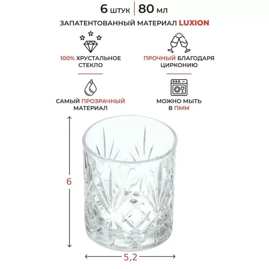 Чарки для лікеру прозорі екокришталь MELODIA 6 шт/80 мл