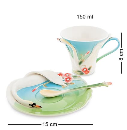 Чашка для американо Pavone «Лебеді» 150 мл з блюдцем, подарункова