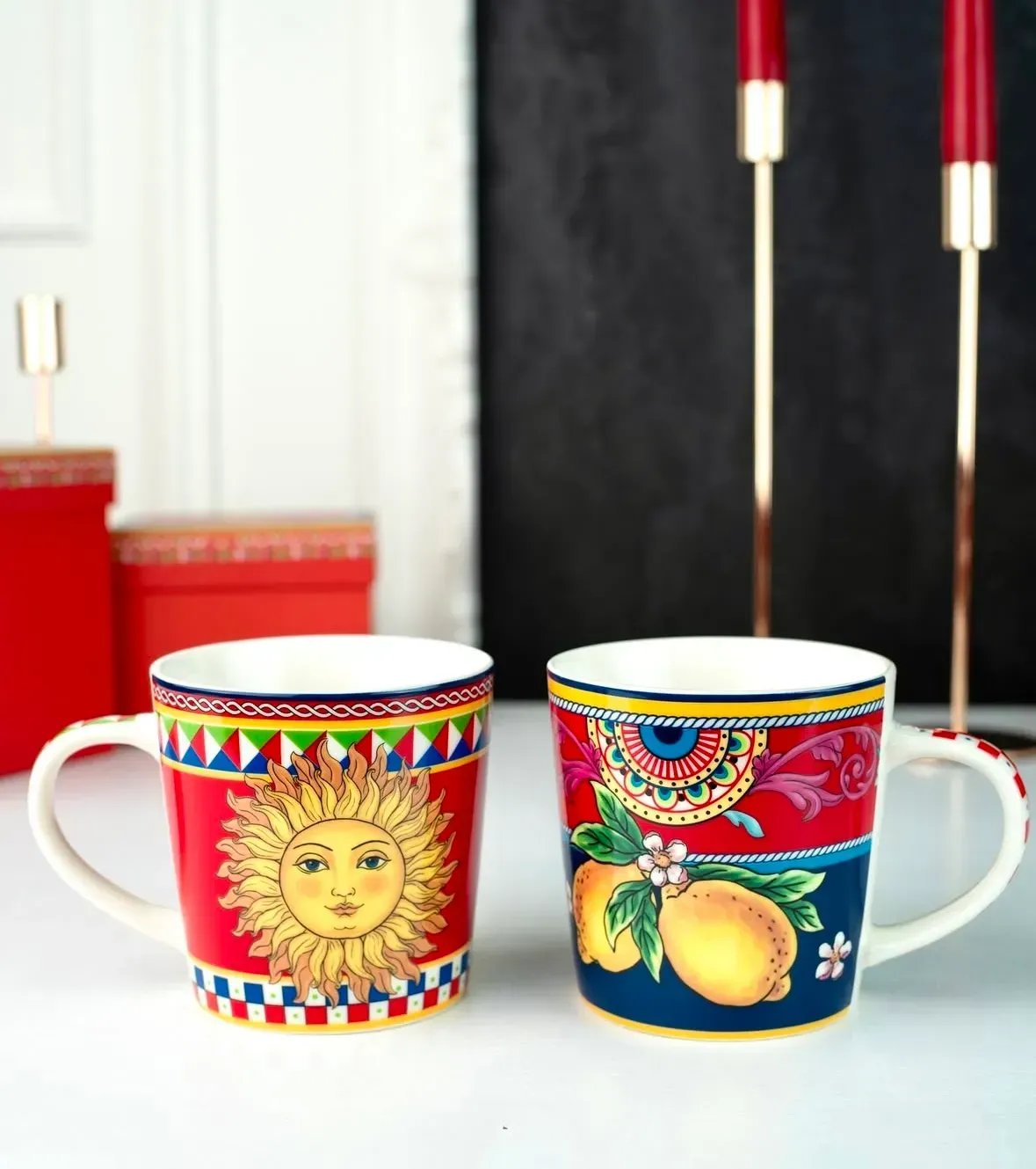 Чашка Dolche 400 мл — это настоящая вспышка красок на вашей кухне! Ее яркий узор, сочетающий красный, синий и желтый, словно оживляет атмосферу, создавая настроение праздника. Лимоны, нежные цветы и орнамент в стиле сицилийских фресок превращают каждое чаепитие или кофейную паузу в маленькое путешествие по солнечной Италии.