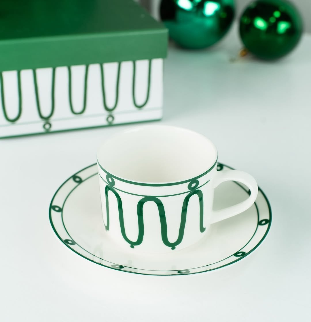 Чашка Green Line станет отличным выбором как для повседневного использования, так и в качестве стильного подарка. Она упакована в фирменную коробку с таким же орнаментом, что делает её ещё более презентабельной. Это не просто посуда, а деталь, которая создаёт уют и настроение за столом.