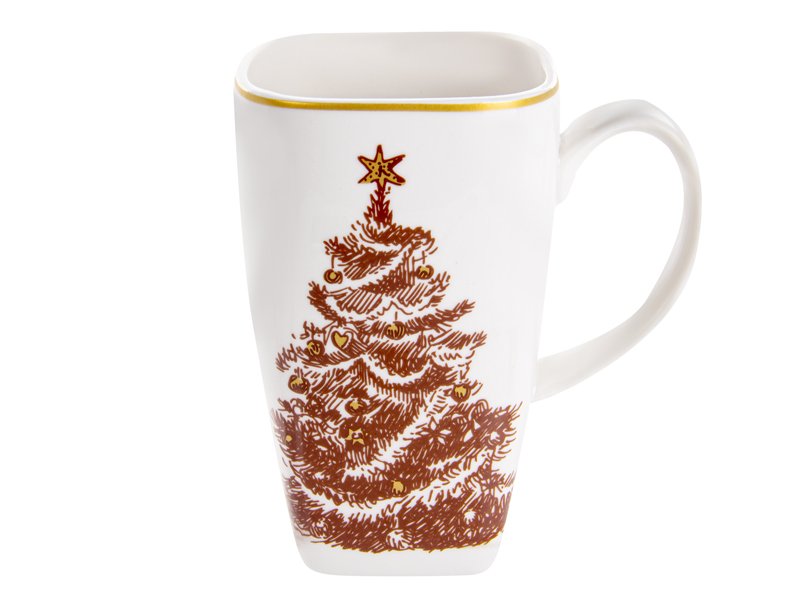 Ця фарфорова чашка MERRY CHRISTMAS об’ємом 600 мл створена для тих, хто цінує відчуття справжнього свята в кожному ковтку. Білосніжна поверхня прикрашена золотавим зображенням різдвяної ялинки, що робить її не лише практичним предметом посуду, а й стильним акцентом вашого святкового столу.