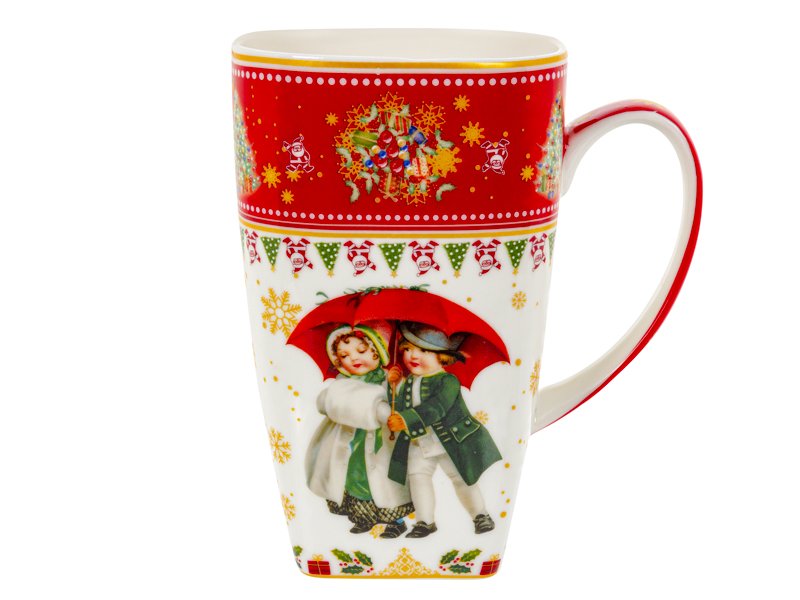 Коллекция фарфоровых кружек Vintage — это яркое воплощение рождественского настроения. На каждой кружке изображены трогательные винтажные иллюстрации с детьми, которые готовятся к празднику: они держат ёлку, гуляют под зонтом или украшают дом венком. Такие рисунки словно переносят нас в атмосферу старинного Рождества, наполненного теплом и радостью.