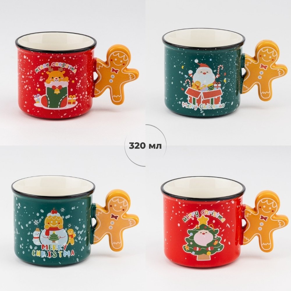 Ці керамічні кружки розміром 9×8,5 см наче створені для того, щоб перетворити звичайний день на маленьке свято. Яскраві червоний та зелений кольори, кумедні новорічні принти й ручка у формі пряничного чоловічка роблять кожну кружку справжньою прикрасою вашої кухні. Уявіть собі: ранок, аромат свіжозавареної кави, вогники гірлянди – і ця кружка у ваших руках.