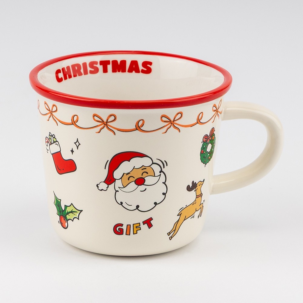 Колекція Merry Mood – це керамічні кружки розміром 10×8,5 см та об’ємом 350 мл, які буквально дихають атмосферою Різдва. Кожна кружка прикрашена милими зимовими малюнками: веселий Санта, кумедний олень, новорічні гірлянди та подарунки – усе це створює настрій свята ще до першого ковтка.
