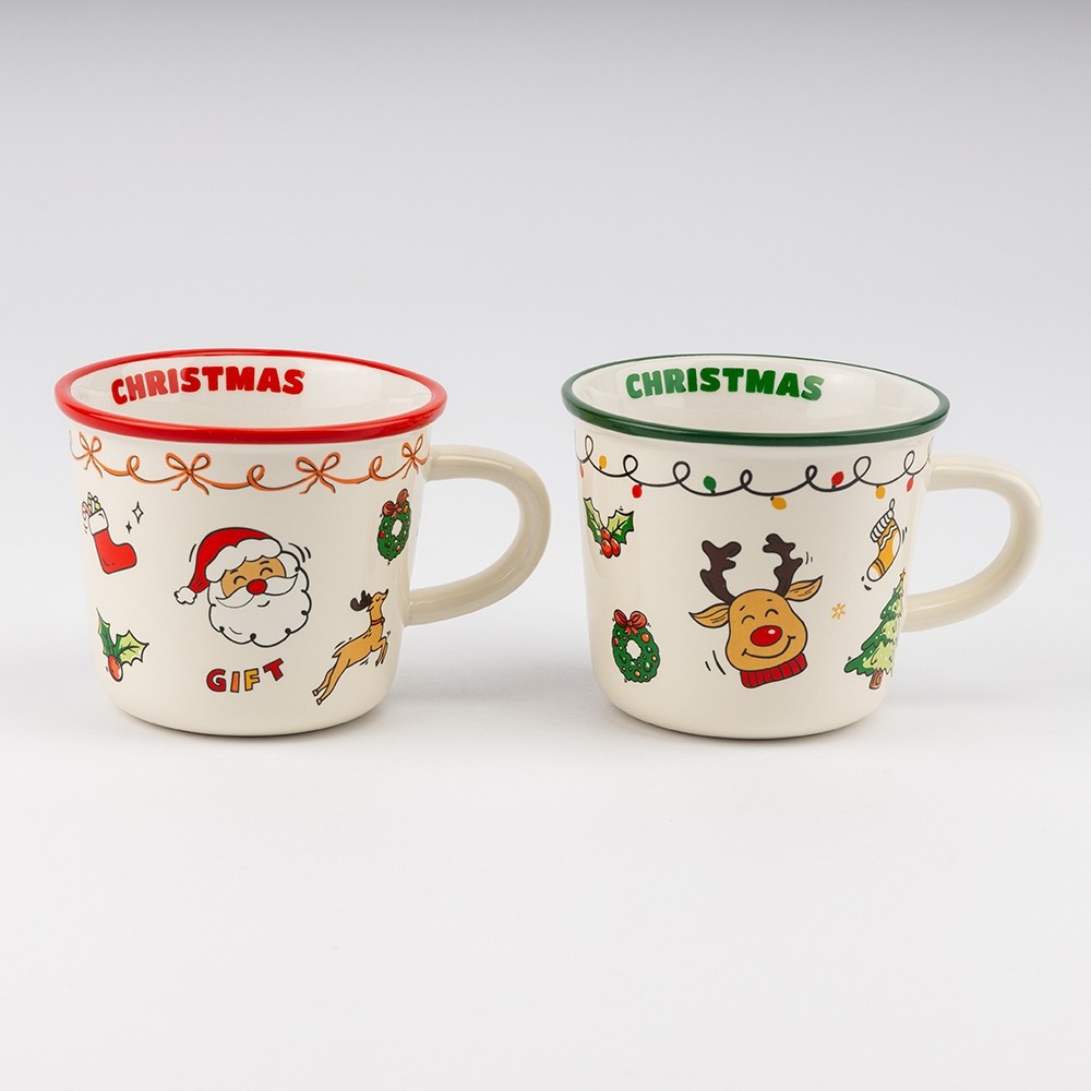 Ці кружки виготовлені з якісної кераміки, яка чудово утримує тепло. Зручна форма та приємна на дотик ручка роблять їх ідеальними для затишних зимових напоїв: ароматного глінтвейну, гарячого шоколаду чи пряного чаю. Контрастний обідок додає яскравості й робить кружку святковою прикрасою столу.