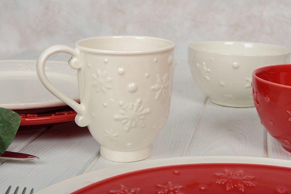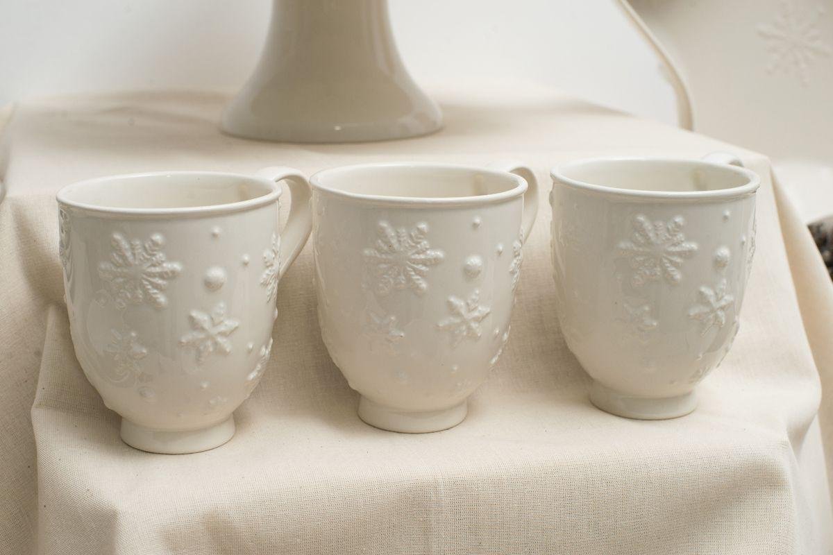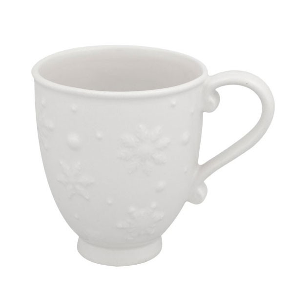 Білосніжні чашечки із серії «Сніжинки» наповнять зимове чаювання затишком та елегантністю. Зручна форма виробів, міцна якісна кераміка, витончений декор – це все про них. Чашки можна придбати як поштучно, так і в наборі, зібравши сервіз. Чашки підійдуть до абсолютно будь-якого сервірування, тому ви не прогадаєте, піднісши їх в якості подарунка до різдвяних свят. По всій білосніжній поверхні розташувалися ажурні об'ємні сніжинки і снігові пластівці. Зручна ручка збоку чашки має вигнуту форму і дуже зручна у використанні.