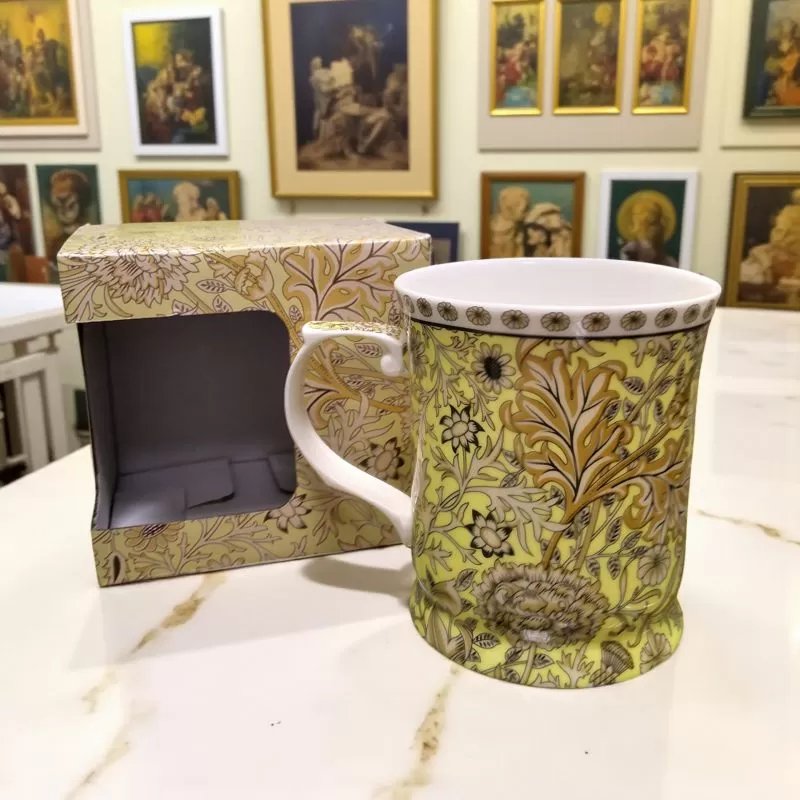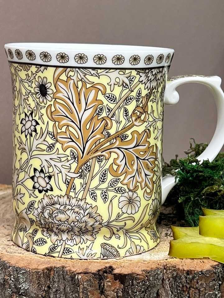 Фарфорова кружка «Морріс» — це справжній шедевр у світі посуду, створений для тих, хто цінує естетику у повсякденних дрібницях. Її дизайн натхненний роботами видатного художника Вільяма Морріса — майстра, який перетворив природні візерунки на витончені символи затишку та гармонії. Тонкий фарфор вкритий теплим золотисто-жовтим фоном, прикрашеним вишуканим рослинним орнаментом, що ніби оживає на світлі. Кожна деталь малюнка дихає історією та шляхетністю англійського стилю.