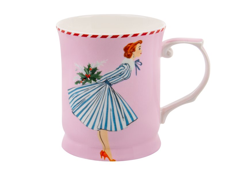 Порцелянова кружка Miss Christmas 400 мл — справжня окраса зимових чаювань. Ніжно-рожевий фон із витонченою героїнею у смугастій сукні створює атмосферу ретро-елегантності, наче зі святкових листівок 50-х років. М’які лінії форми, зручна ручка та святкова окантовка роблять кружку не лише гарною, а й зручною у щоденному користуванні.