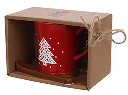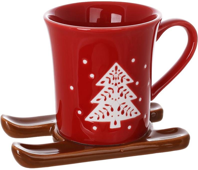 Чашка рождественская фарфоровая красная На санках 150 мл