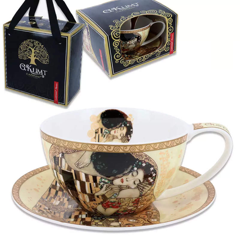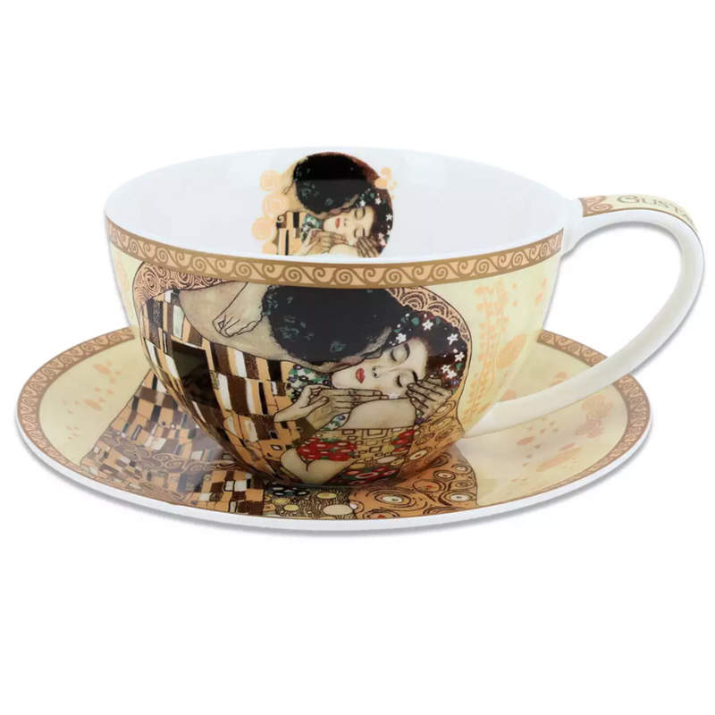 Чашка с блюдцем фарфоровые Г.Климт Поцелуй 360 мл