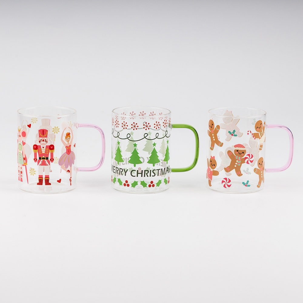 Колекція Festive Glass Joy – це легкі скляні кружки розміром 7,5×10 см та об’ємом 350 мл, які миттєво створюють атмосферу свята. Кожна кружка прикрашена яскравими новорічними малюнками – пряникові чоловічки, ялинки, лускунчики та святкові візерунки перетворюють звичайний напій на частину зимової радості.