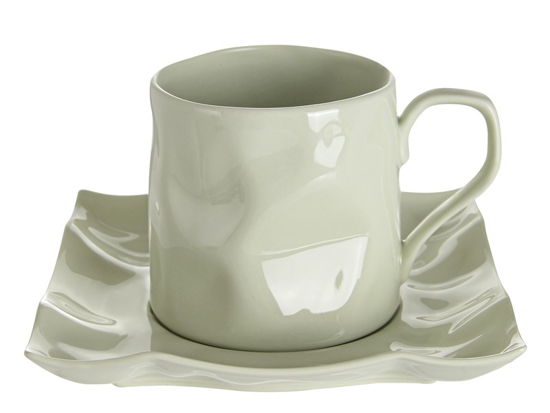 Чашка з блюдцем порцелянові оливкові Пудра 250 мл