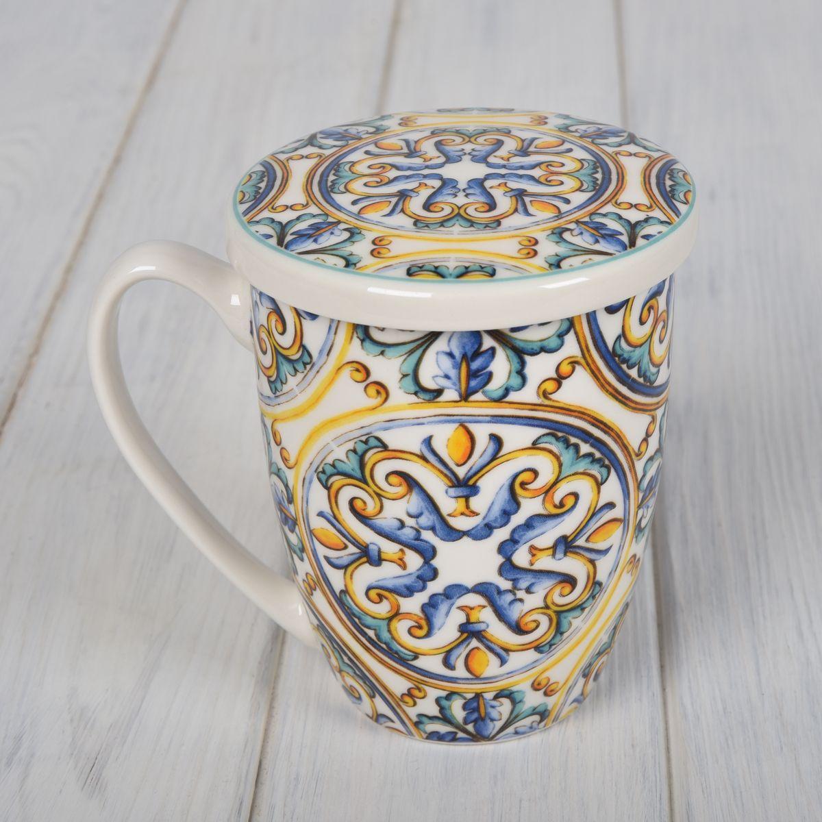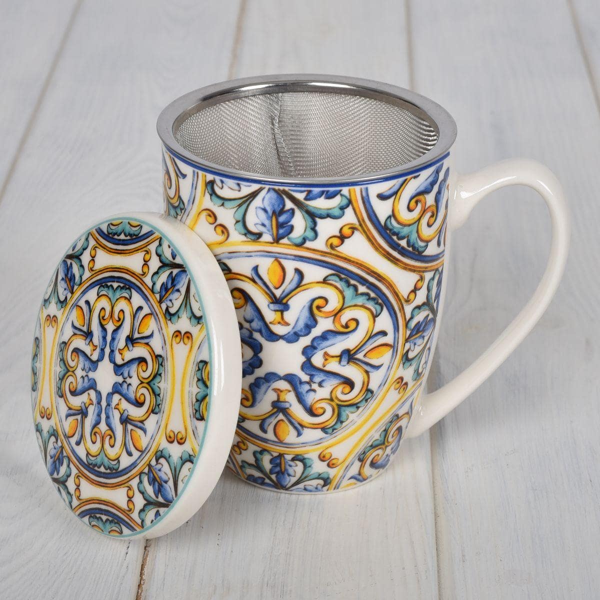 Чашка-заварник порцелянова з кришкою та ситечком 350 мл Медичи Італія