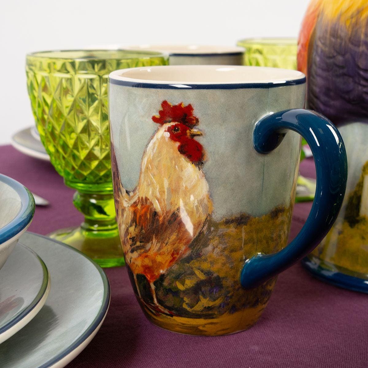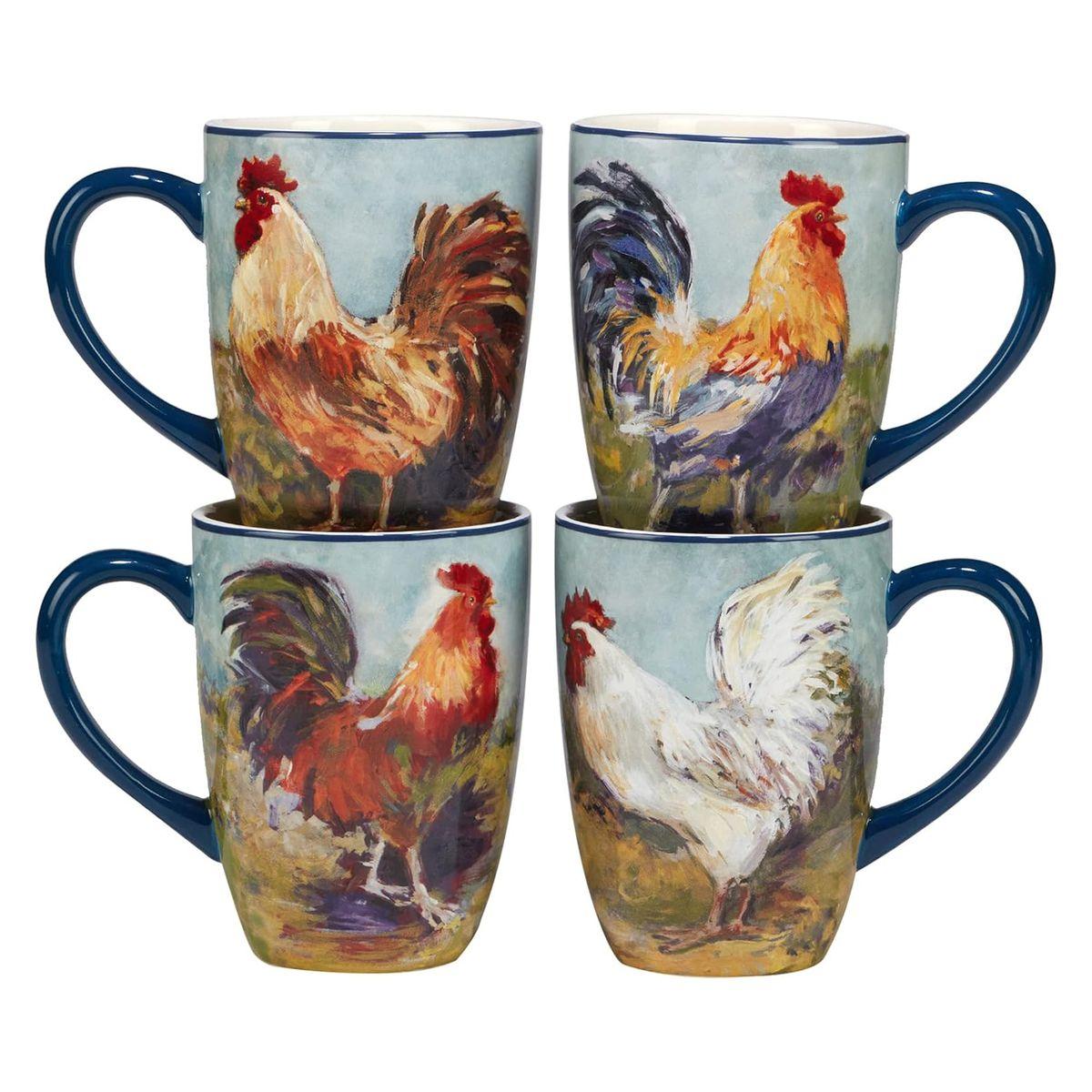 Посуд виготовлений із надміцної екологічної кераміки преміум-класу. Оригінальний квітковий дизайн створений популярною американською художницею Сюзен Уінгет. На кожній із чашок зображено півня. Не рекомендується чистити засобами з абразивними частинками.