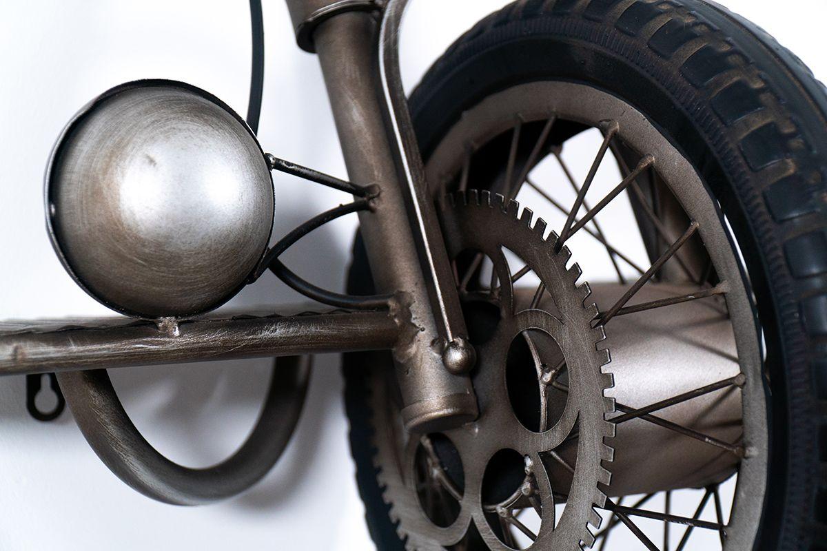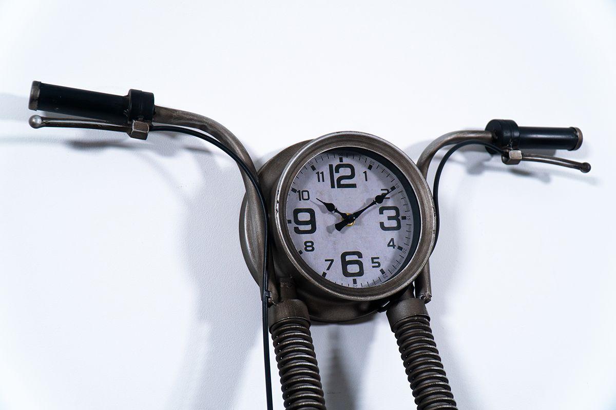 Часы Davids – захватывающее сочетание стилей стимпанк, ретро и лофт, которое привнесет что-то новое и свежее в ваш дом. Это функциональный декор, придающий пространству динамичность и стильную брутальность. Металлическая рама изготовлена в форме мотоцикла с огромной фарой-циферблатом. Литые негнущиеся элементы спаяны в прочную конструкцию. Сверху нанесено покрытие стойкой бронзовой краской с металлическим блеском.