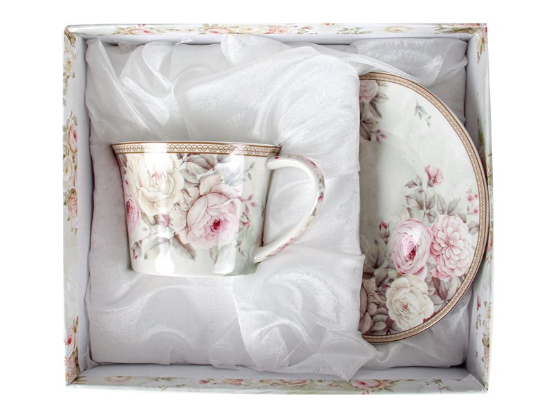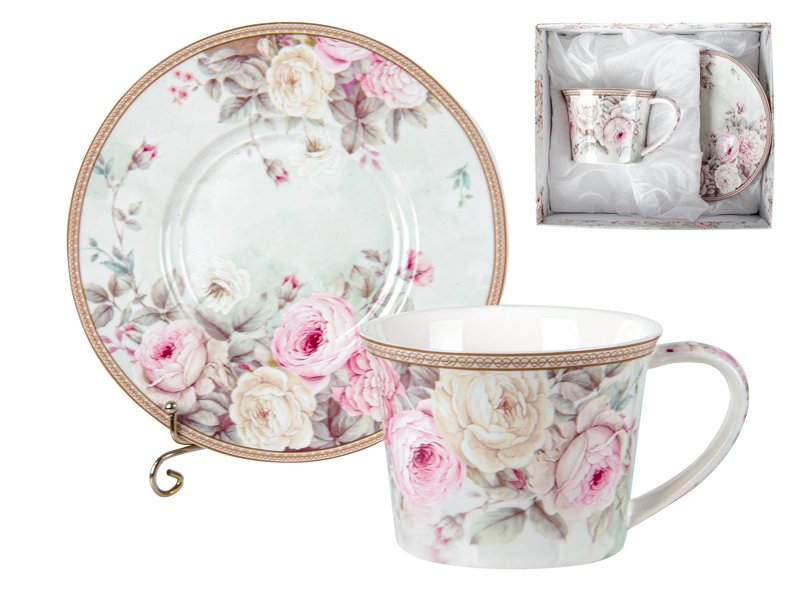 Чайная пара фарфоровая English Rose — воплощение нежности и английского стиля. Изделие украшено утончённым рисунком в виде пышных розовых бутонов и мягкой зелени, создающих атмосферу гармонии и спокойствия. Лёгкий золотистый кант добавляет нотку классической изысканности и завершает композицию, превращая каждое чаепитие в эстетическое удовольствие.