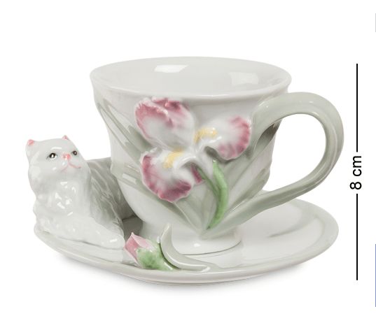 Незважаючи на безліч найрізноманітніших композицій і порцелянових фігурок, мабуть, важко знайти що-небудь красивіше і зворушливіше, ніж тварини та квіти. Чайна пара «Кошеня з ірисом» однозначно служить тому підтвердженням. Яскравий ірис на чайній чашці і кошеня, що може бути найкращим подарунком з будь-якого приводу, а може бути і навіть без нього.