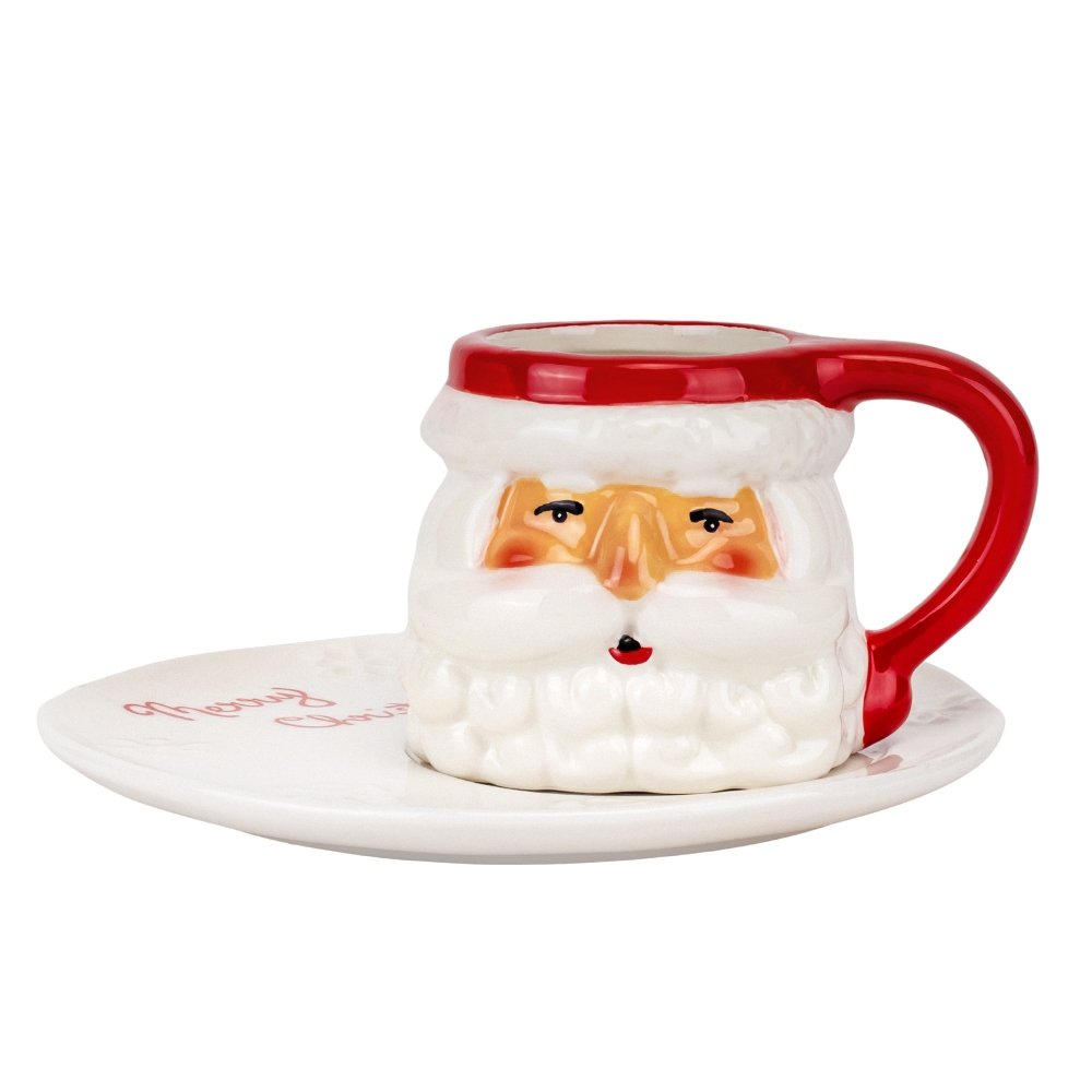 Кружка «Santa’s Joy» с блюдцем — это настроение Рождества, которое можно держать в руках. Объем 250 мл идеально подходит для утреннего кофе, ароматного какао или вечернего чая, а яркий образ Санты делает каждый глоток особенным. Красная ручка и праздничная надпись Merry Christmas на блюдце создают атмосферу зимнего уюта и тепла, напоминая о любимых праздничных традициях.