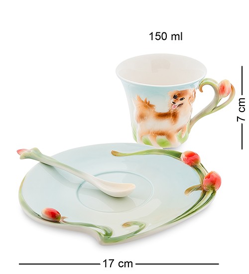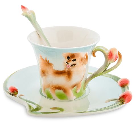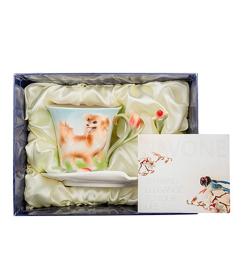 Фарфоровые чашка с блюдцем Собака Pavone 150 мл