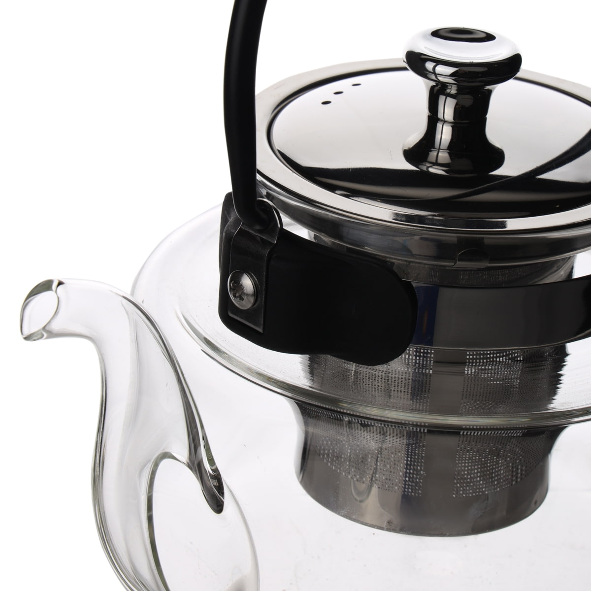 Заварник виконаний із міцного скла, здатного витримувати високі температури. Сито виготовлене із нержавіючої сталі, що збільшує термін служби.
