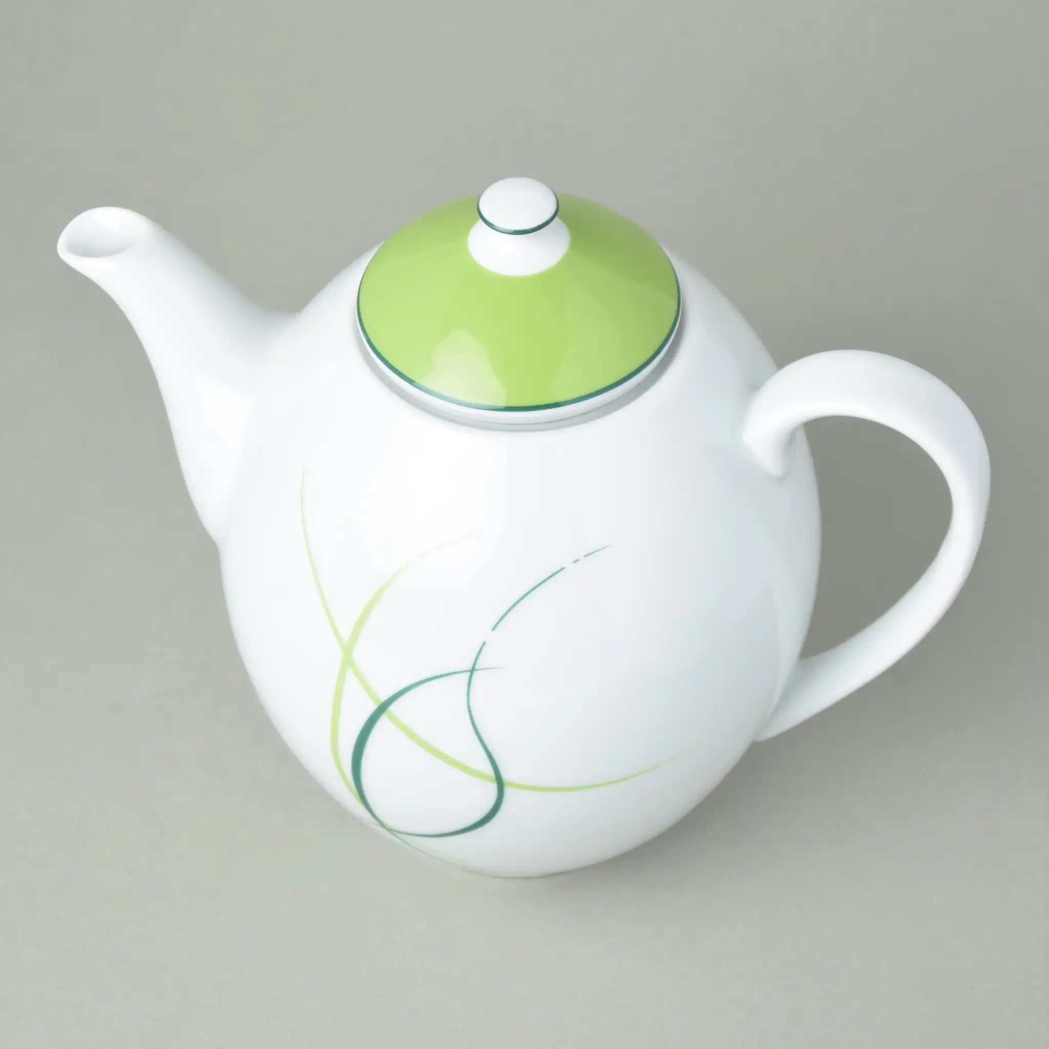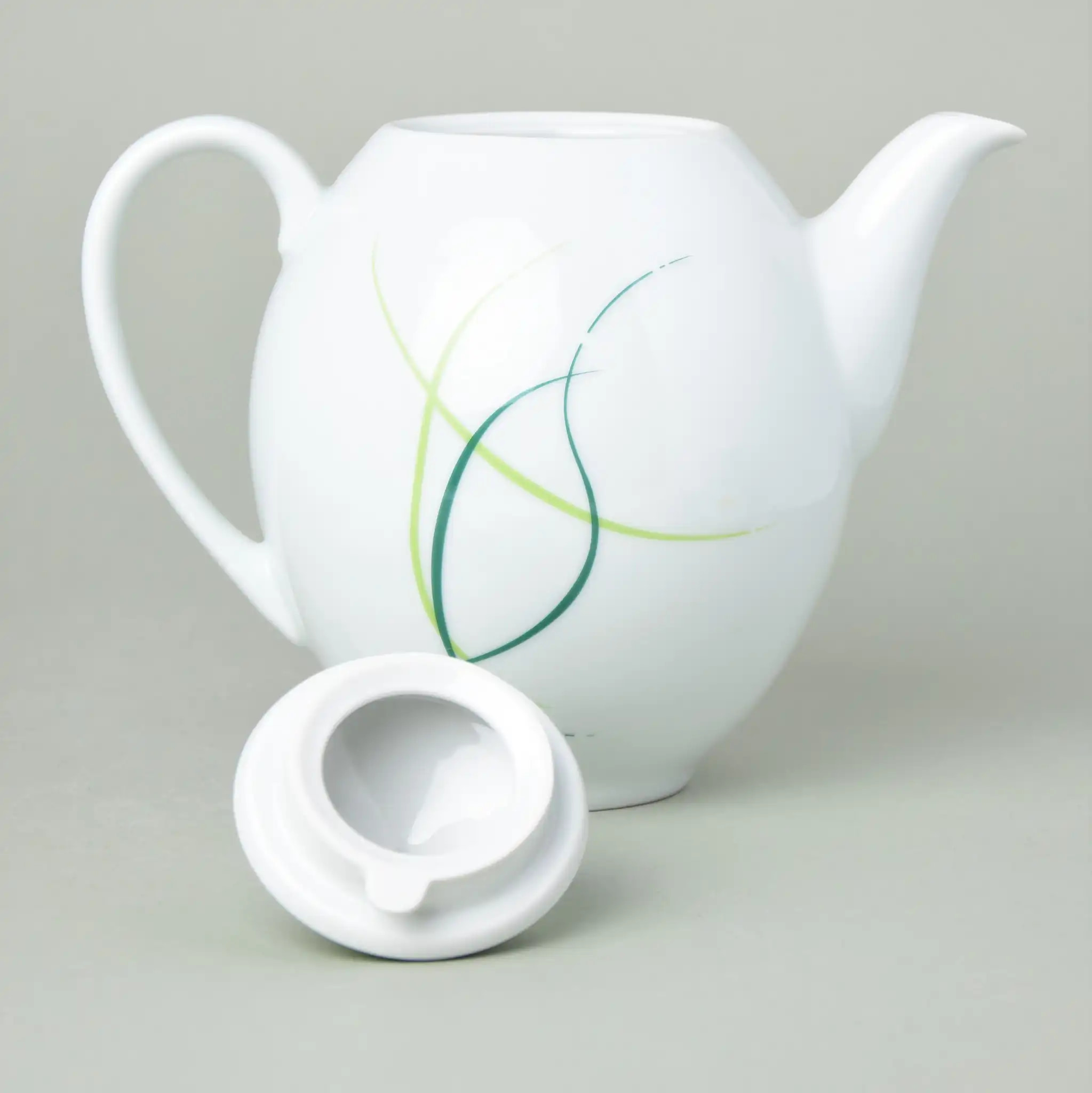 Белоснежный фарфор с лаконичным декором радует глаз лёгкими зелёными линиями, напоминающими весенний ветер. А крышка цвета молодой листвы завершает образ — как свежая нота в аромате крепкого кофе. Этот кофейник не просто красив — он удобен, функционален и вместителен: 1,2 литра хватит на большую компанию или несколько приятных перерывов подряд.