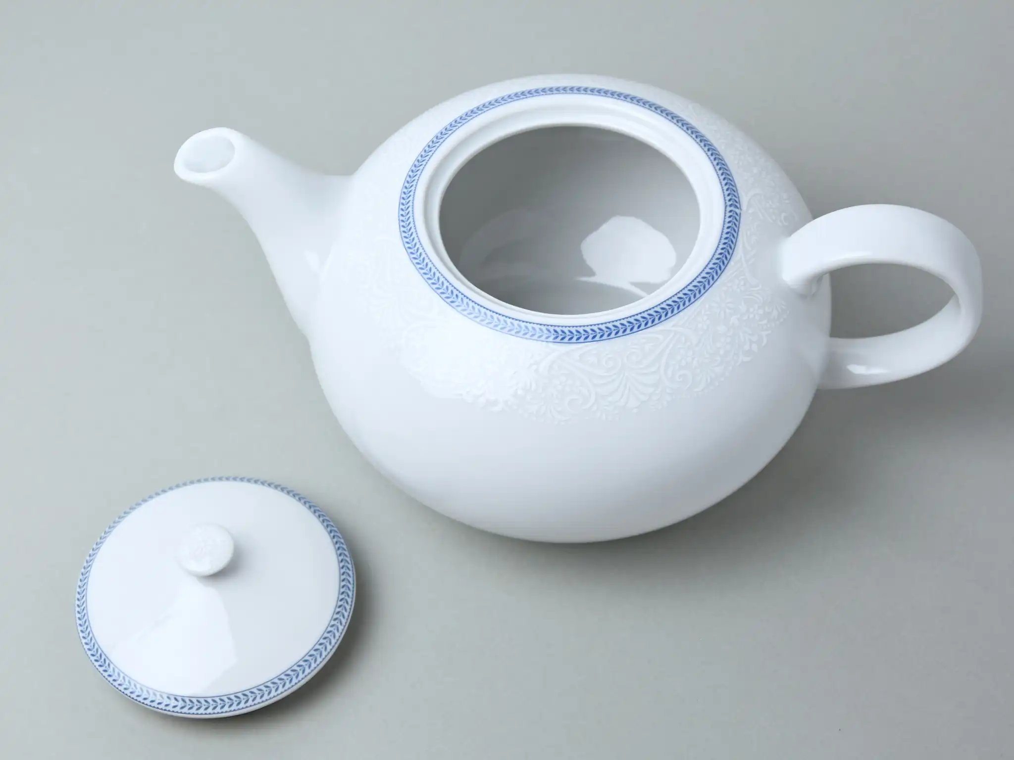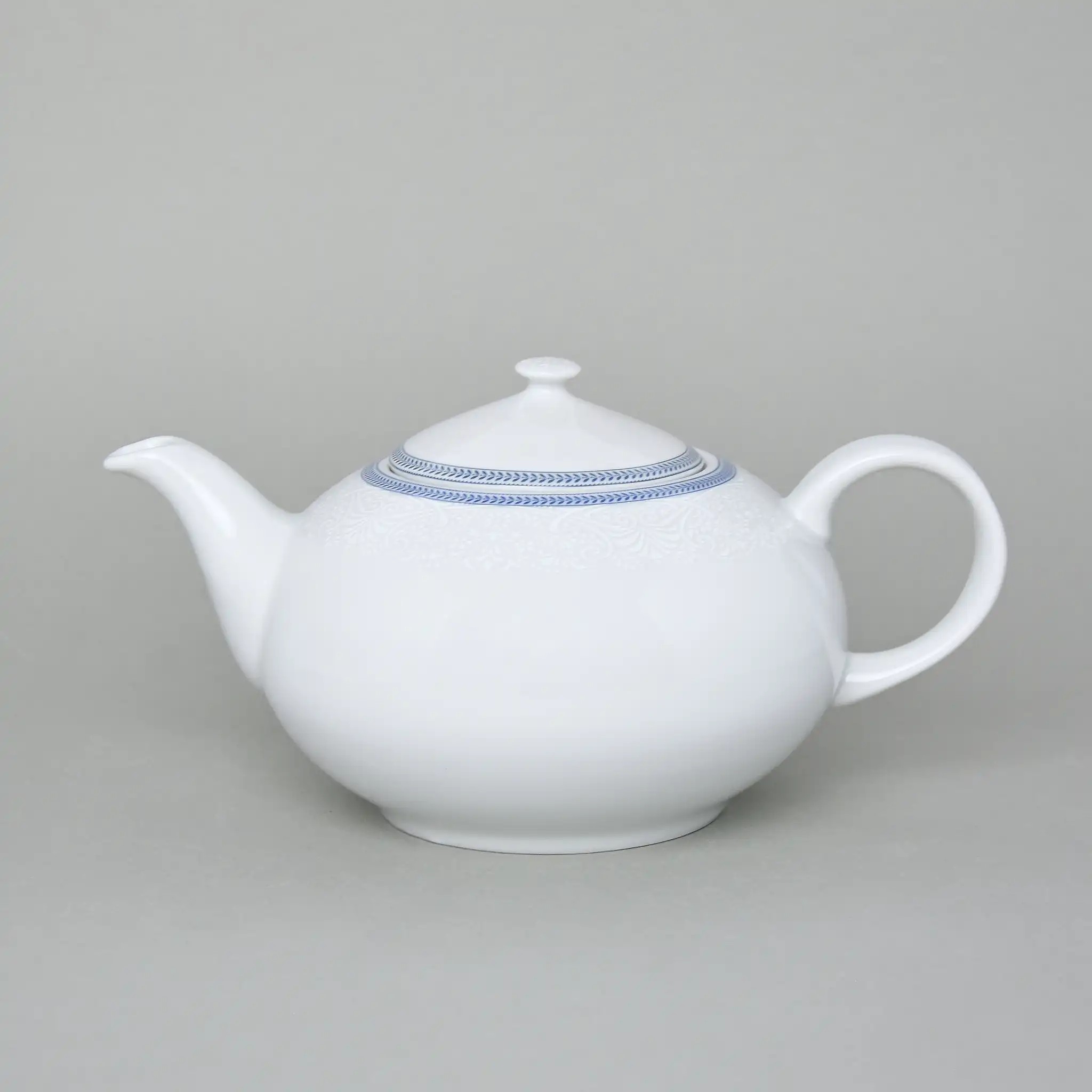 Чайник фарфоровый белый Thun Opal Голубые Пластинки с голубым окаймлением 1.2 л