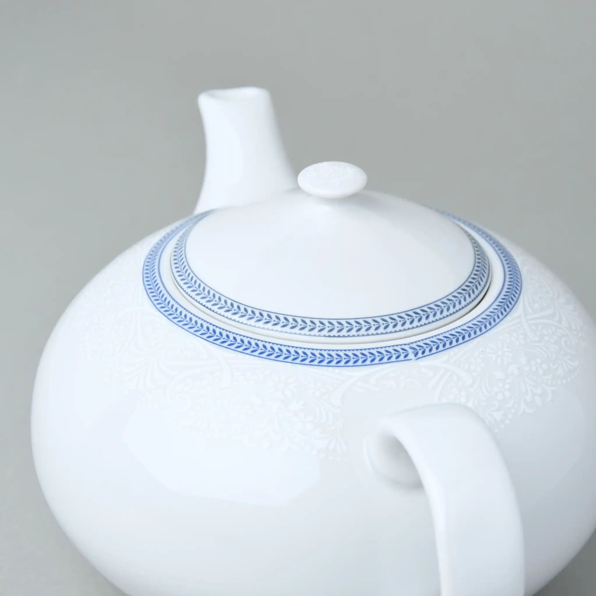 Этот чайник — как утренний ритуал, воплощённый в фарфоре. Белоснежный корпус, украшенный рельефным орнаментом и утончённой голубой каймой, словно приглашает остановиться и насладиться моментом. Коллекция Opal — это чистота линий, лёгкий аристократизм и вневременная красота.