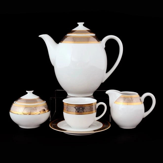 Кофейник фарфоровый с декором Thun Opal 1.2 л широкая кайма платина+золото