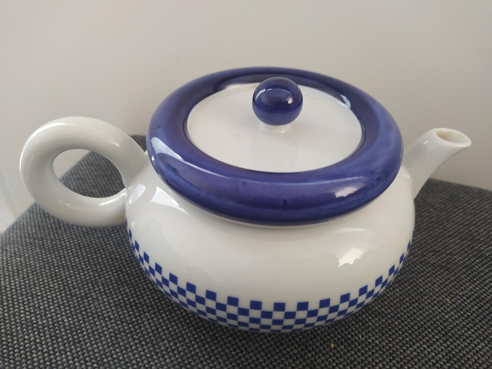 Заварочный чайник THUN серии Berta — это настоящее воплощение чешского фарфорового искусства, сочетающее в себе практичность, очарование деревенского стиля и высокое качество. Выполненный в бело-синей гамме с аккуратной клеткой и надписью, он словно приглашает вас в уютный домик на лужайке с ароматным чаем и теплой беседой.