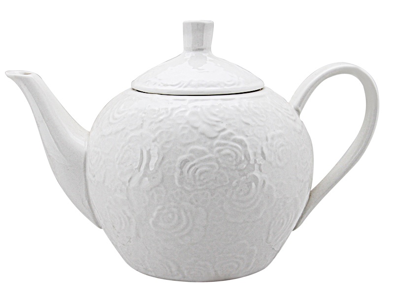Этот изысканный фарфоровый чайник объёмом 1,2 литра — воплощение утончённости и практичности в одном изделии. Белоснежная поверхность украшена рельефным цветочным орнаментом, который придаёт чайнику особый шик и делает его выразительным элементом любой сервировки. Классическая форма с длинным носиком обеспечивает удобство при наливании, предотвращая проливание напитка.