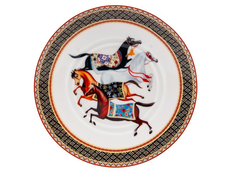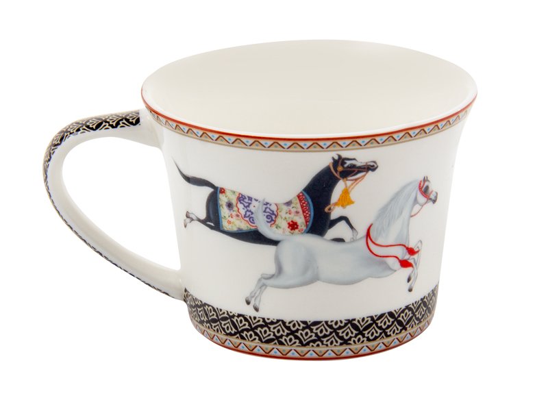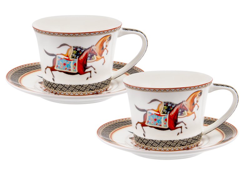 Чайний набір Equides на 2 персони — це втілення динаміки, статності та витонченості. На білосніжній порцеляні оживає вишуканий сюжет із трьома скакунами, прикрашеними східними попонами. Кожна деталь малюнка передає енергію руху та східну естетику, перетворюючи звичайне чаювання на справжню насолоду для очей.