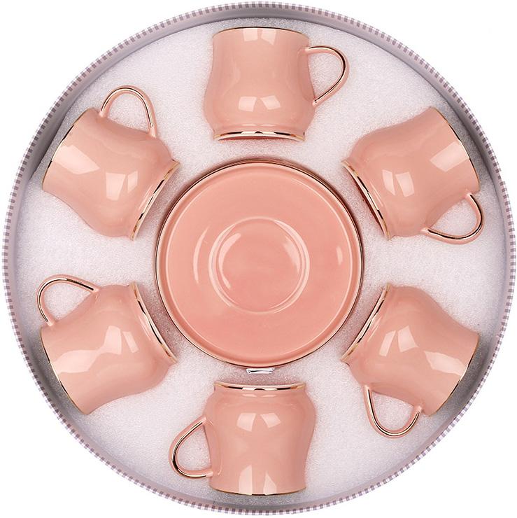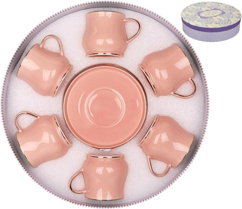 Чайный набор фарфоровый с золотой каймой на 6 персон Баланс 220 мл, Цвет: Розовый, Объем чашки: 220 мл