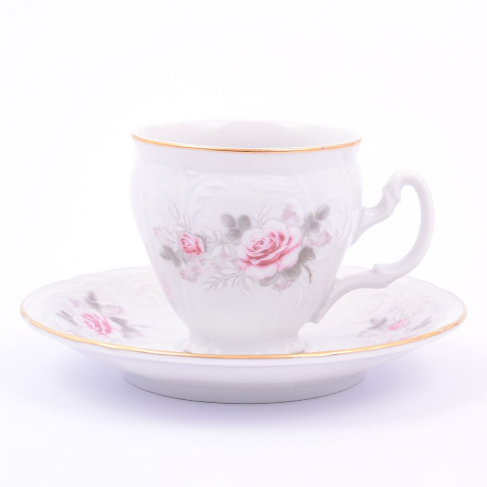 Набор низких чашек на ножке с блюдцем фарфор Bernadotte "Роза" на 6 персон