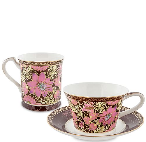 Відразу два елементи чайного набору «Квітковий джаз» схожі на малюнку. І разом із цим дивує різний стиль виконання кожного елемента. Плавні лінії та елегантність першого гуртка входять у протиріччя з прямими лініями другого гуртка. І це зачаровує, роблячи набір унікальним за своєю природою. Об'єднуючим фактором стають плавні лінії візерунків та синій відтінок посуду, що змушує приділити увагу власним мріям. Досконала білизна, насичений глянець і витончена форма чайної пари викликають захоплення, а гармонійний союз витонченості та вишуканості стане справжньою знахідкою для всіх поціновувачів прекрасного. Приємні тони та плавні лінії розпису роблять фарфоровий набір схожим на те, чим користувалися середньовічні аристократи.