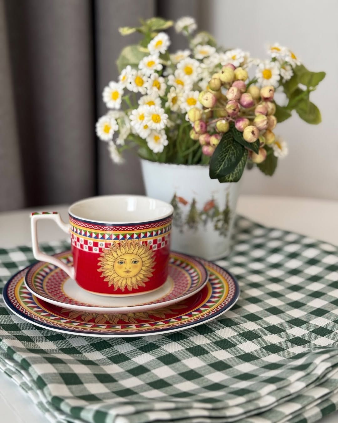 Коллекция Dolche — это настоящий взрыв красок и эмоций на вашем столе! Каждая чашка сочетает в себе смелый дизайн и атмосферу итальянского праздника: сочные лимоны, сияющее солнце, контрастные орнаменты и яркие узоры создают настроение радости с первой же чашки чая. Такой сервиз превращает чаепитие в маленькое путешествие в солнечную Италию, где всегда царит лето.