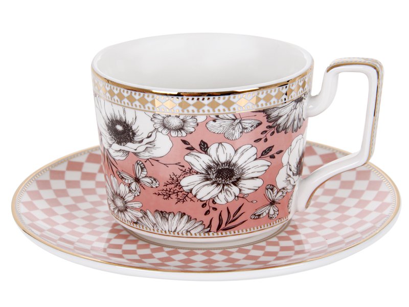 Чайная пара выполнена из качественного фарфора, что гарантирует долговечность и комфорт в использовании. Удобная форма чашки позволяет в полной мере насладиться вкусом чая или кофе, а изысканный дизайн превращает каждое чаепитие в маленький праздник. Даже простая пауза с этим набором наполняется красотой и теплом.