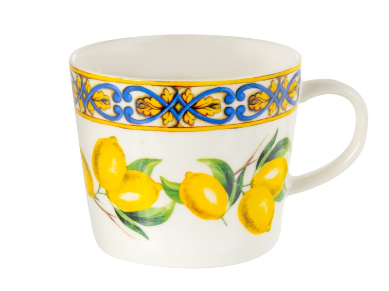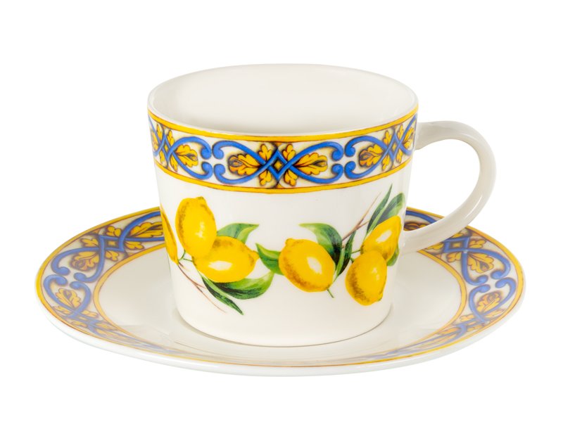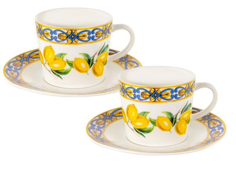 Чайный набор «Сицилийский лимон» — это настоящее воплощение солнечного настроения и итальянского колорита на вашем столе. Каждая чашка и блюдце украшены ярким лимонным принтом и золотисто-синим бордюром, создающим эффект южного праздника. Такой дизайн привносит в чаепитие особую атмосферу тепла, уюта и стиля, как будто вы наслаждаетесь напитком где-то на побережье Сицилии.