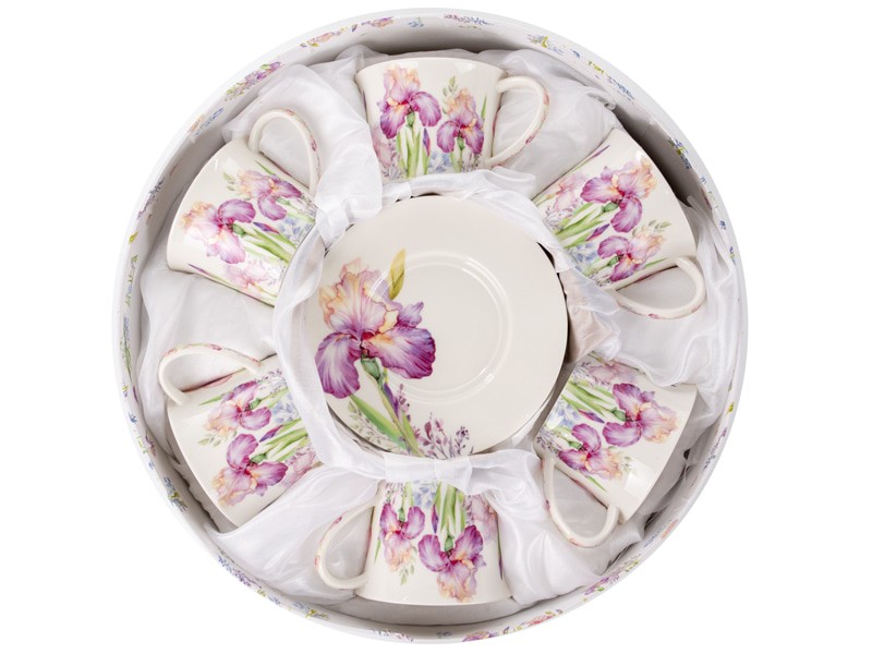 Фарфоровый чайный набор Iris Lefard на 12 предметов — это торжество нежности и изысканного вкуса. Белоснежный фарфор украшен ярким рисунком цветущих ирисов, выполненным в мягких розово-сиреневых тонах. Каждая чашка и блюдце — как произведение искусства, передающее красоту природы и лёгкость весеннего утра.