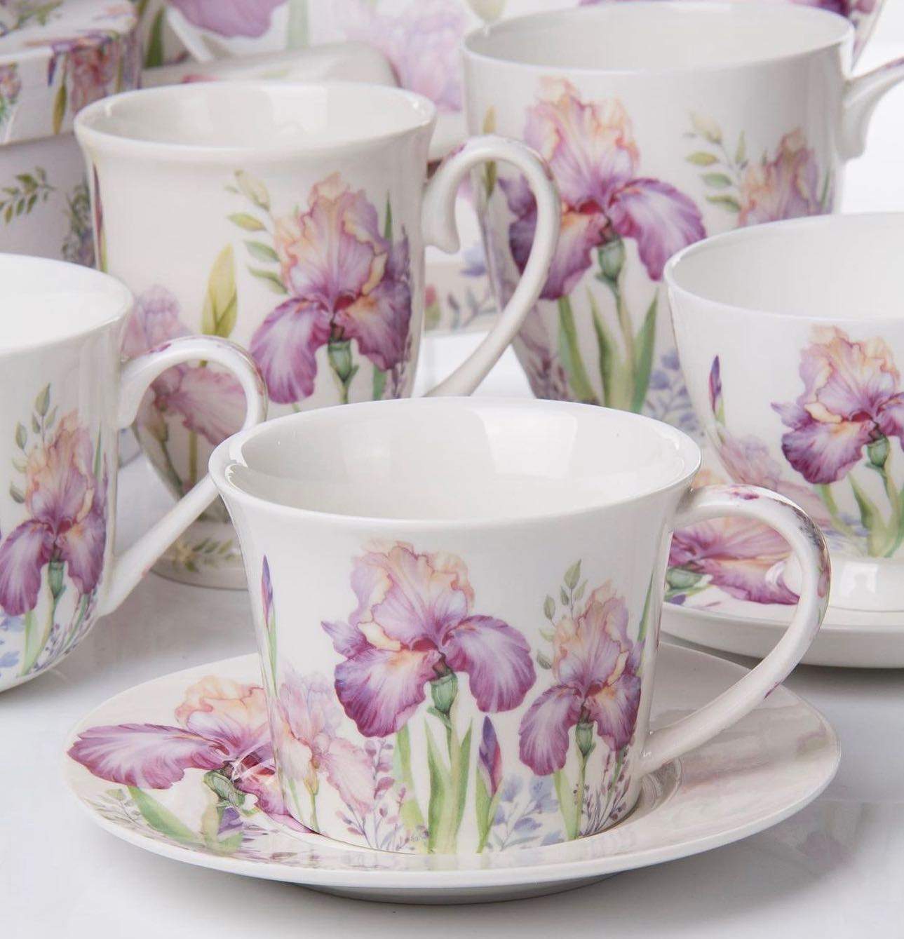 Фарфоровый чайный набор Iris Lefard на 2 персоны — это воплощение нежности и весенней свежести на вашем столе. Белоснежный фарфор, украшенный крупными ирисами в розово-фиолетовых тонах, наполняет атмосферу уютом и лёгкостью. Каждая чашка словно картина, где переливы цвета передают красоту цветущего сада.