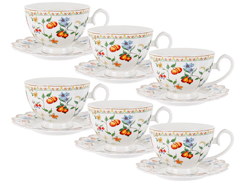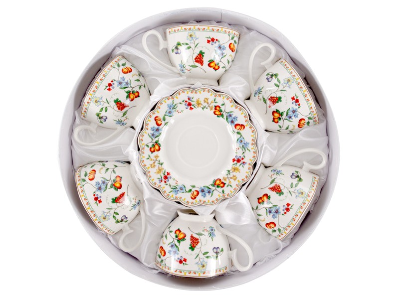 Чайный набор подарочный фарфоровый Фрукты на 6 персон