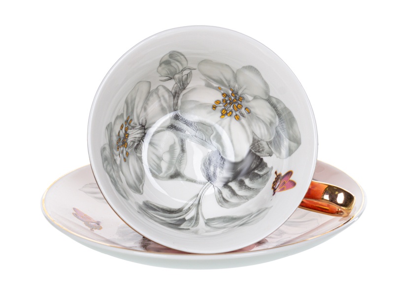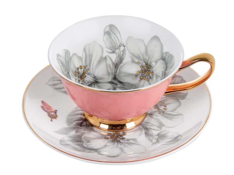 Коллекция фарфоровых чайных наборов Spring Blossom создана для тех, кто ценит гармонию изысканного дизайна и практичности в повседневных моментах. Нежный розовый цвет внешней поверхности изящно сочетается с художественной росписью цветущих ветвей внутри чашек и на блюдцах. Золотистые детали по контуру и на ручках придают каждой паре праздничный блеск, создавая атмосферу утончённости на любом столе. Эта коллекция легко впишется как в домашние уютные чаепития, так и в эффектную сервировку для особых случаев.
