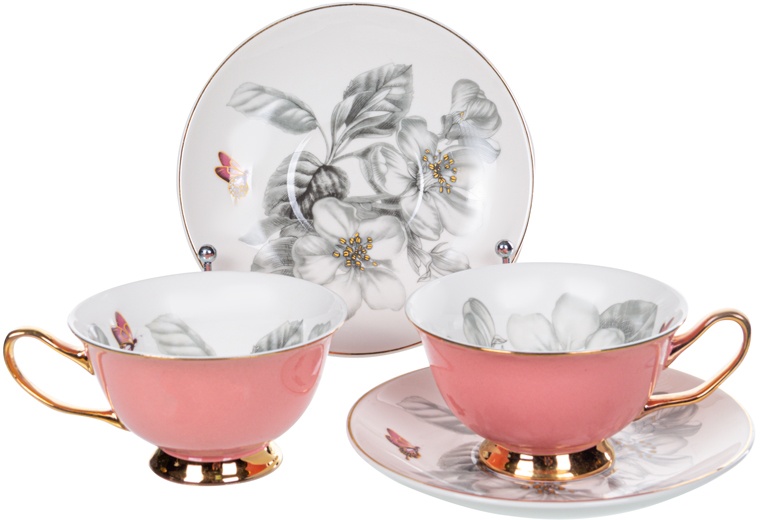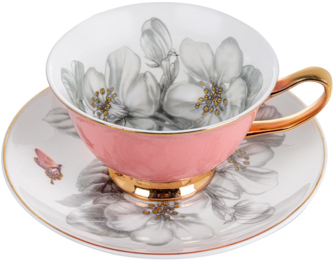 Коллекция фарфоровых чайных наборов Spring Blossom создана для тех, кто ценит гармонию изысканного дизайна и практичности в повседневных моментах. Нежный розовый цвет внешней поверхности изящно сочетается с художественной росписью цветущих ветвей внутри чашек и на блюдцах. Золотистые детали по контуру и на ручках придают каждой паре праздничный блеск, создавая атмосферу утончённости на любом столе. Эта коллекция легко впишется как в домашние уютные чаепития, так и в эффектную сервировку для особых случаев.