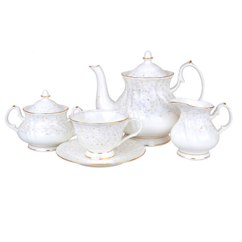 Чудесный чайный сервиз "Вивьен" выполнен из фарфора по уникальным на сегодняшний день технологиям. Этот сервиз станет украшением вашего стола, хорошим подарком на свадьбу или годовщину свадьбы. Сервиз упакован в фирменную подарочную коробку.