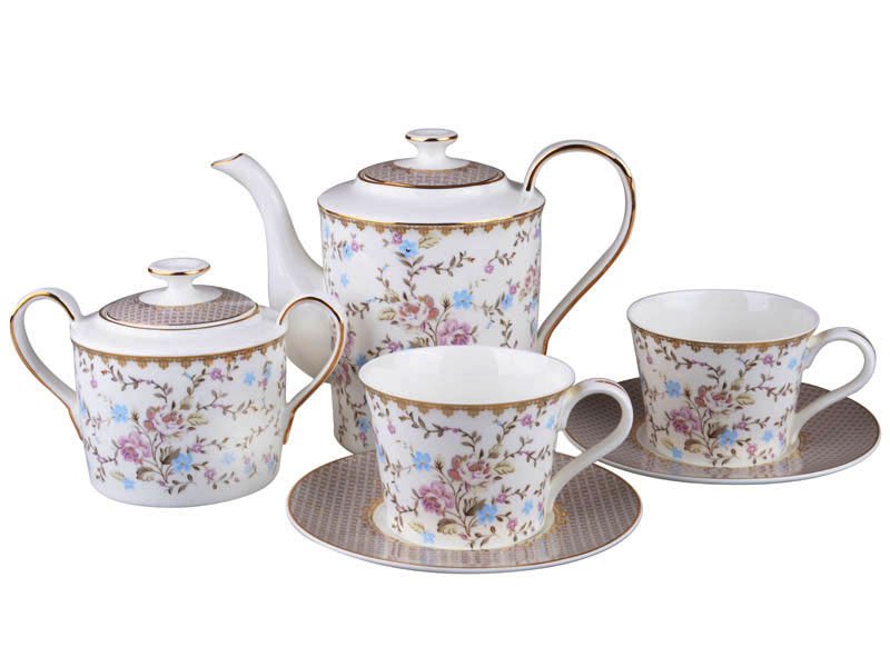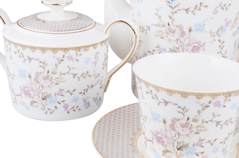 Фарфор отличается прочностью и долговечностью, а изящные формы элементов придают сервировке лёгкость и стиль. Каждая деталь набора тщательно проработана: от удобных чашек до идеально сбалансированного чайника, который удобно держать и наливать.